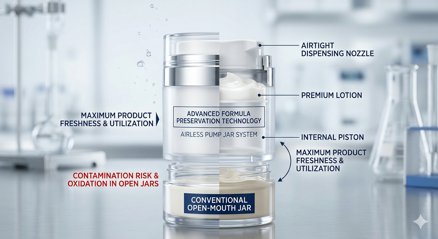 De belangrijkste reden voor de verschuiving in de sector is dat airless pomppotten verleng de houdbaarheid van conserveermiddelvrije en natuurlijke huidverzorgingsproducten aanzienlijk door blootstelling aan lucht te elimineren. Omdat consumenten 'schone schoonheid' eisen met minder synthetische stabilisatoren, moet de verpakking de rol van bescherming overnemen. Traditionele potten laten elke keer dat het deksel wordt geopend zuurstof binnendringen, wat leidt tot de snelle afbraak van actieve ingrediënten zoals vitamine C, retinol en verschillende botanische oliën.