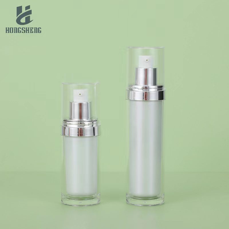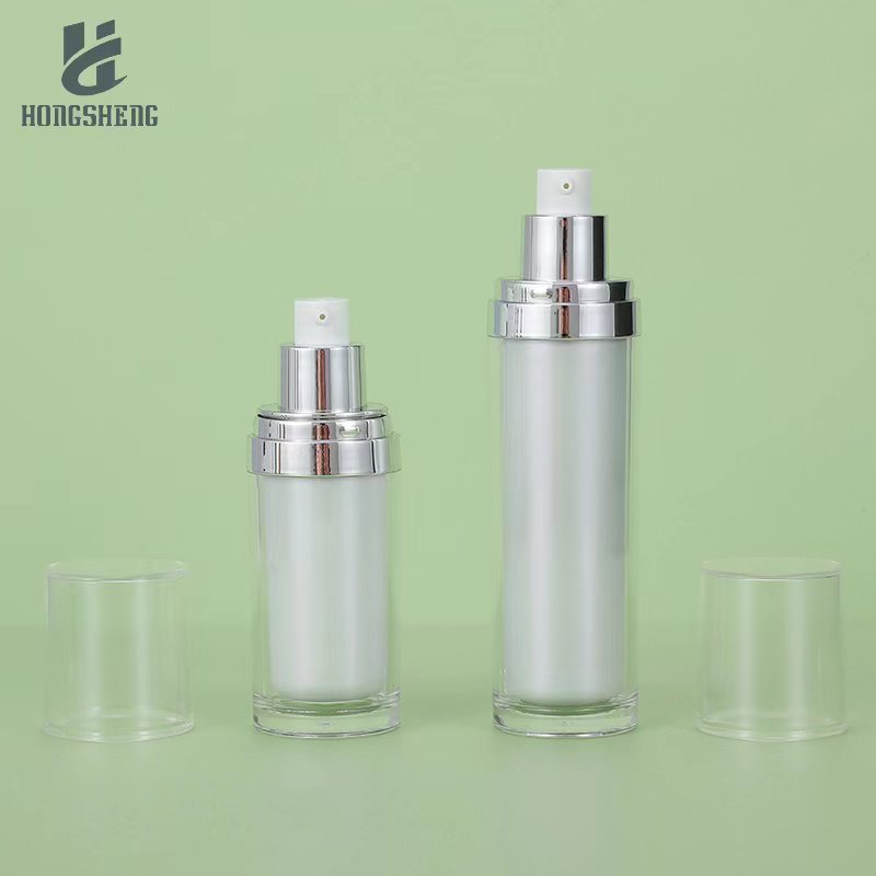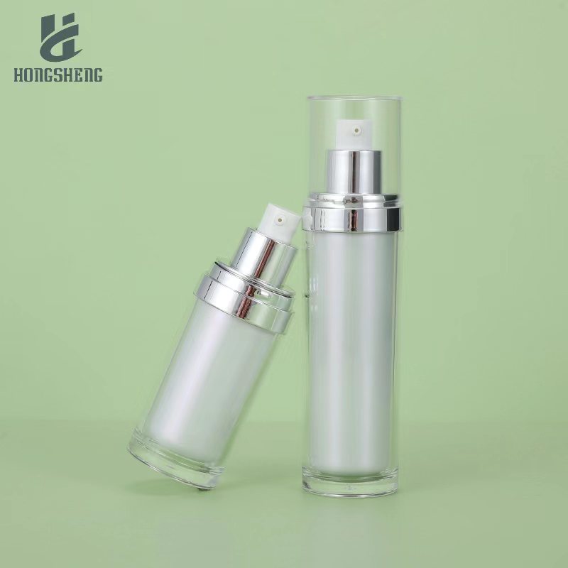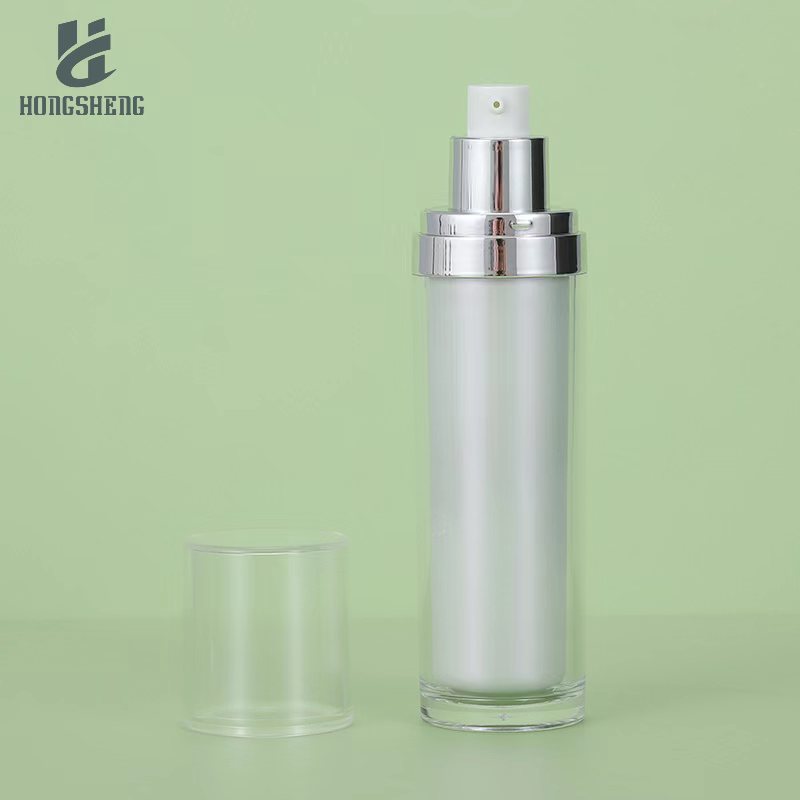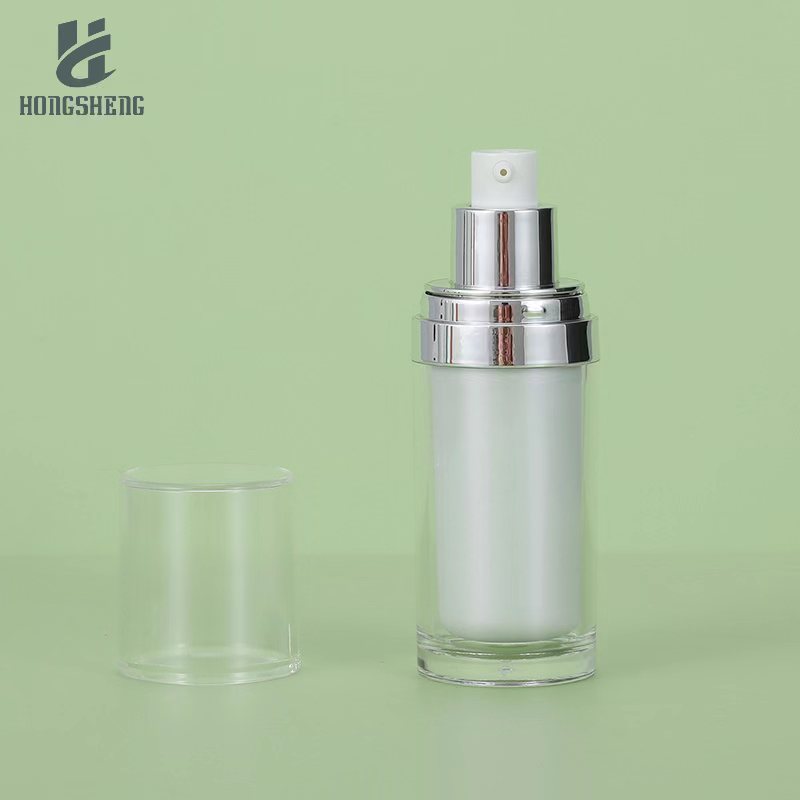 HS-033A Lege ronde acryllotionpompfles Gouden binnenverpakking voor luxe huidverzorgingsflessen maakt gebruik van PET-binnenvoeringmateriaal gecombineerd met een vacuümpompsysteem, dat niet alleen lichtgewicht en milieuvriendelijk is, maar er ook voor zorgt dat de inhoud volledig geïsoleerd is van de lucht, waardoor de stabiliteit en efficiëntie van de formule aanzienlijk wordt verbeterd.